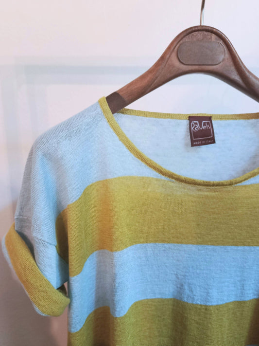 In offertat-shirt lino - righe giallo acido- azzurro