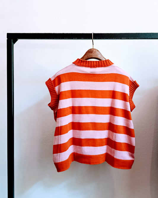 EsauritoGilet boxy - righe rosa arancio